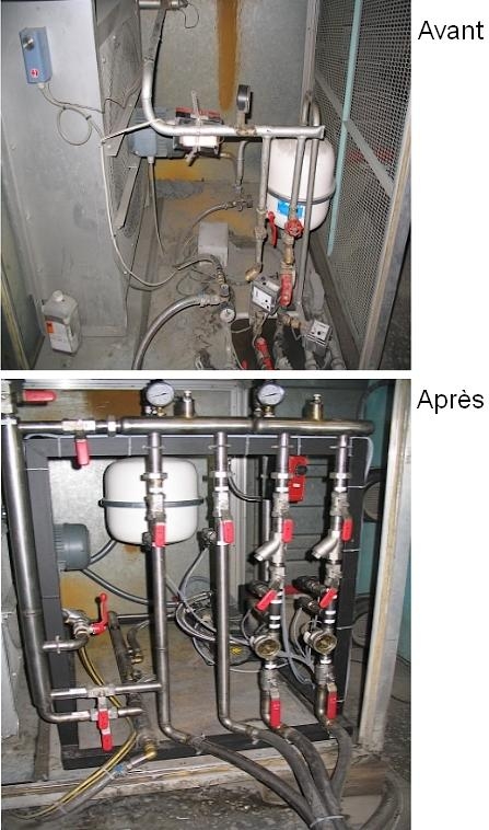 Afin d'optimiser la consommation d'eau, pose d'une régulation de température, d'un asservissement au fonctionnemant des lampes.